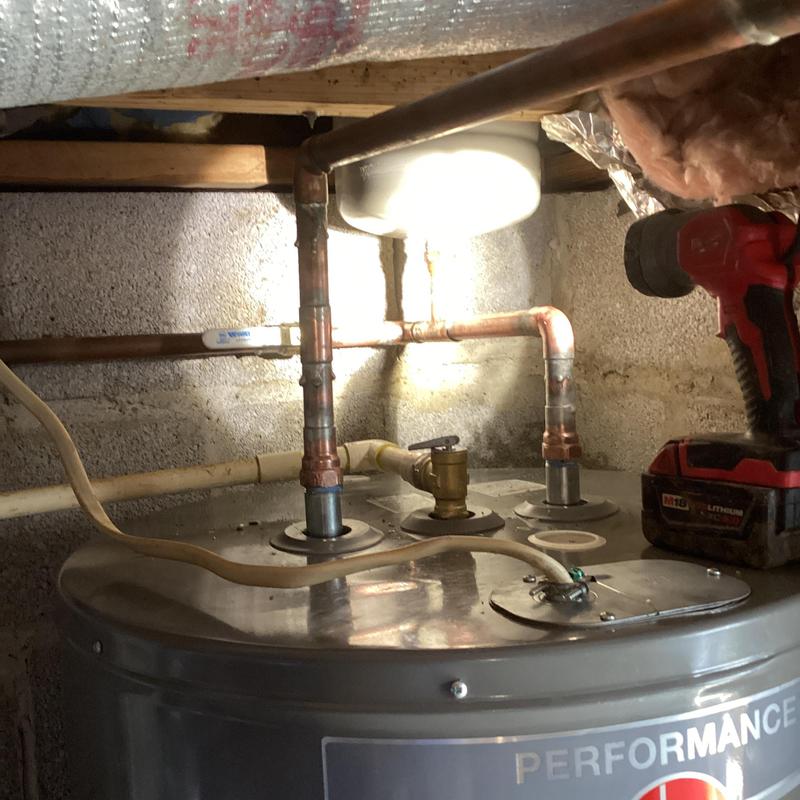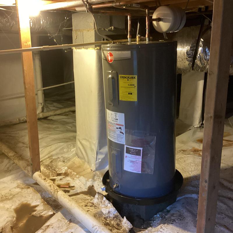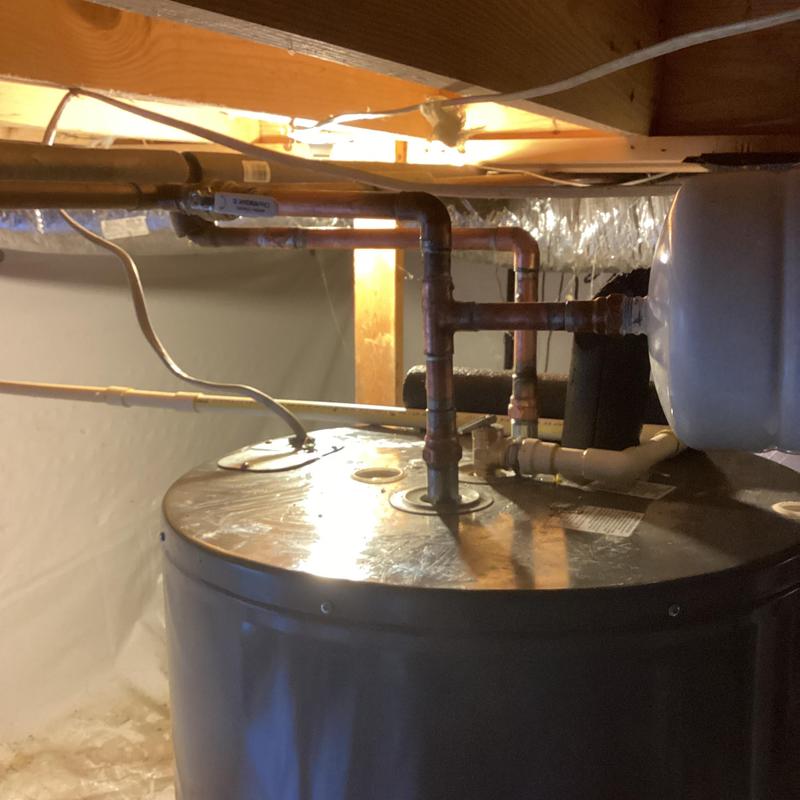 Dean Plumbing and Gas Piping replaced a 50-gallon electric water heater in a crawl space in Huntsville, Alabama. The team leveled the ground, repositioned cinder blocks, reused mounting straps, installed a new expansion tank and shutoff, and connected copper and CPVC piping. All materials were provided, and the system tested without leaks.