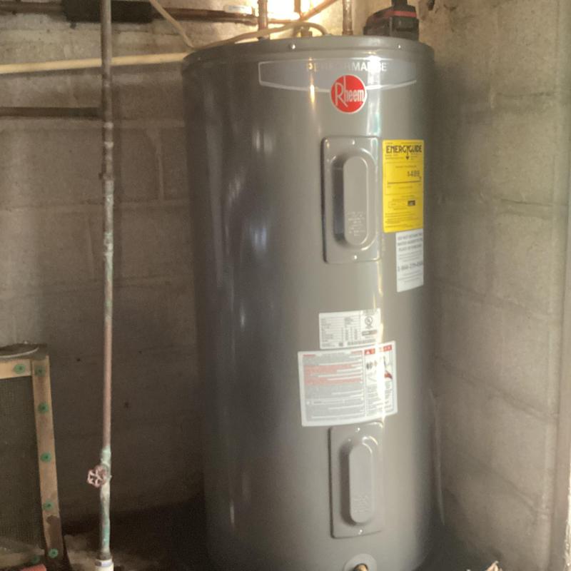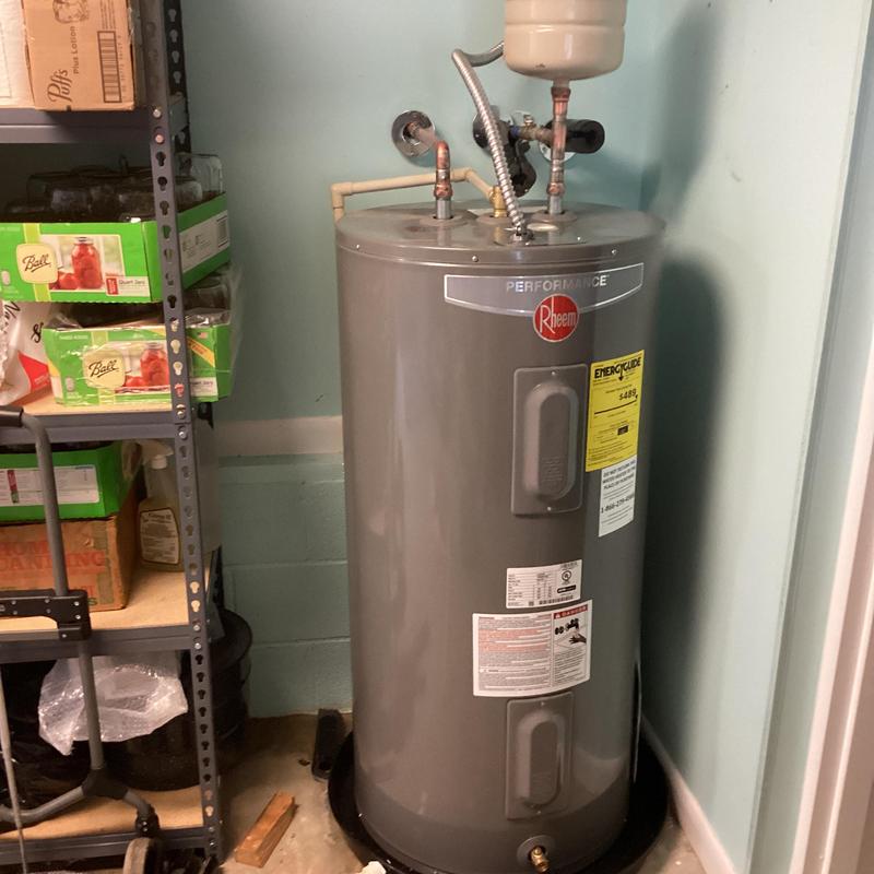 Dean Plumbing and Gas Piping replaced a leaking 80-gallon water heater with a new 50-gallon electric Rheem unit in Huntsville, Alabama. The team installed a new shut-off valve, expansion tank, and copper connections. They tested the system for leaks and confirmed proper operation. All materials were provided, and the installation includes a one-year guarantee.