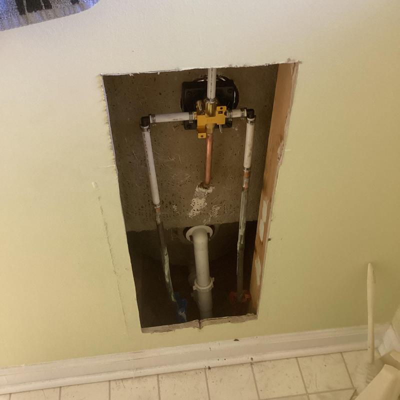 Dean Plumbing and Gas Piping replaced a single-handle Delta shower valve trim kit in Huntsville, Alabama. The technician removed old plumbing, installed new copper piping with PEX and ProPress fittings, and sealed gaps with silicone. Work included cutting drywall to access plumbing. All materials were provided, and the system was tested with no leaks.