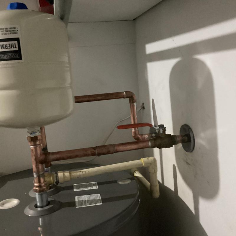 Dean Plumbing and Gas Piping reinstalled a water heater to meet code in Huntsville, Alabama. They ran 34 copper lines, added a condensation pump under the AC, removed non-compliant drain connections, capped sink supply lines, and installed an expansion tank. The system was tested for leaks, and all components functioned properly at completion.
