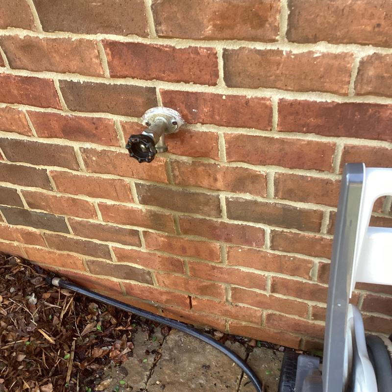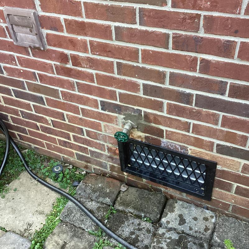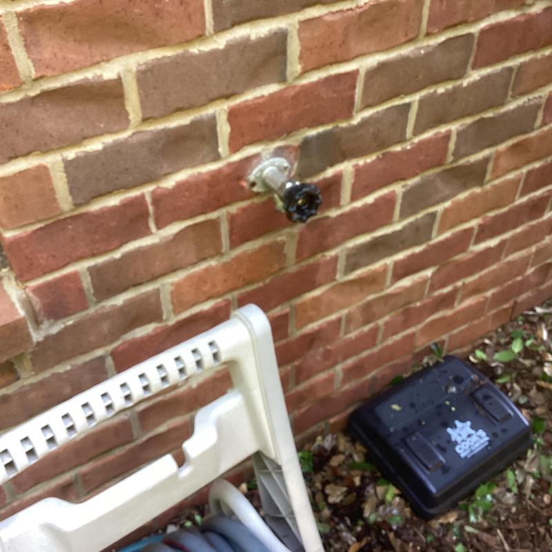 A technician in Owens Cross Roads, Alabama replaced a damaged washer in a leaking hose bib on the left side of a home. The team reassembled the valve, tested the water at 75 PSI, and confirmed normal operation with no leaks at completion. Existing fixtures were not covered under warranty.