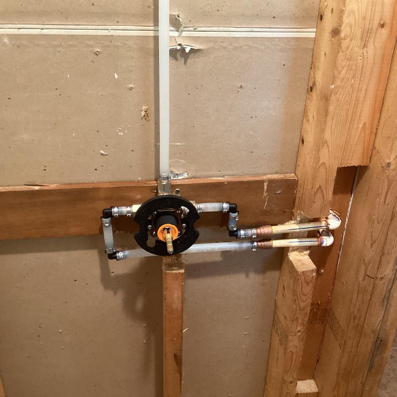 Dean Plumbing and Gas Piping replaced a customer-supplied shower valve in Huntsville, Alabama. The team installed the valve from the front, connected pex piping to existing CPVC lines, and replaced a drop ear 90 with a brass fitting. All connections were secured, leak-tested, and confirmed to be working properly.
