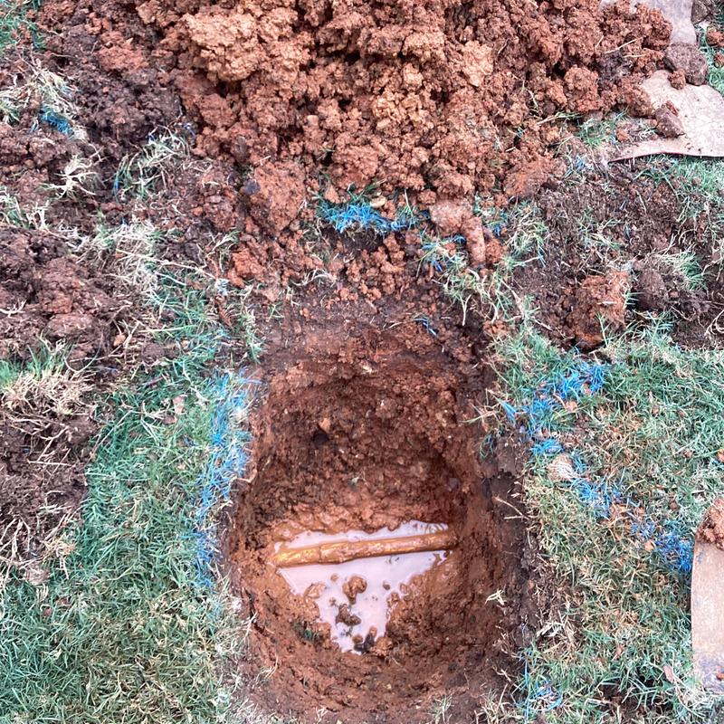 Dean Plumbing and Gas Piping repaired a cracked 1” PVC water line in Madison, AL. The team excavated the area, replaced damaged sections with PEX piping, and restored the water supply. They also fixed a leaking yard hydrant. All work was tested and completed with a 90-day warranty.