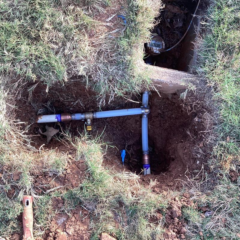 A plumber in Huntsville, Alabama repaired a cracked irrigation line at a ninety-degree fitting. The team excavated soil, removed the damaged section, and installed PEX adapters with new elbows. They restored the water supply and tested the system. The repair includes a 90-day warranty.