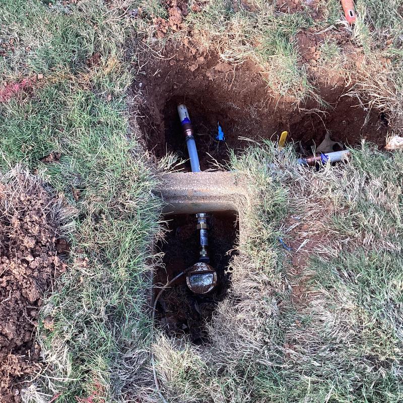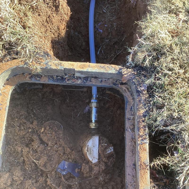 Dean Plumbing and Gas Piping repaired a broken underground shut-off valve in Meridianville, Alabama. The project included installing new shut-off components, connecting PVC and PEX pipes, and stacking access boxes to grass level. Soil was reburied, with no active leaks upon testing. A 90-day work guarantee is provided.