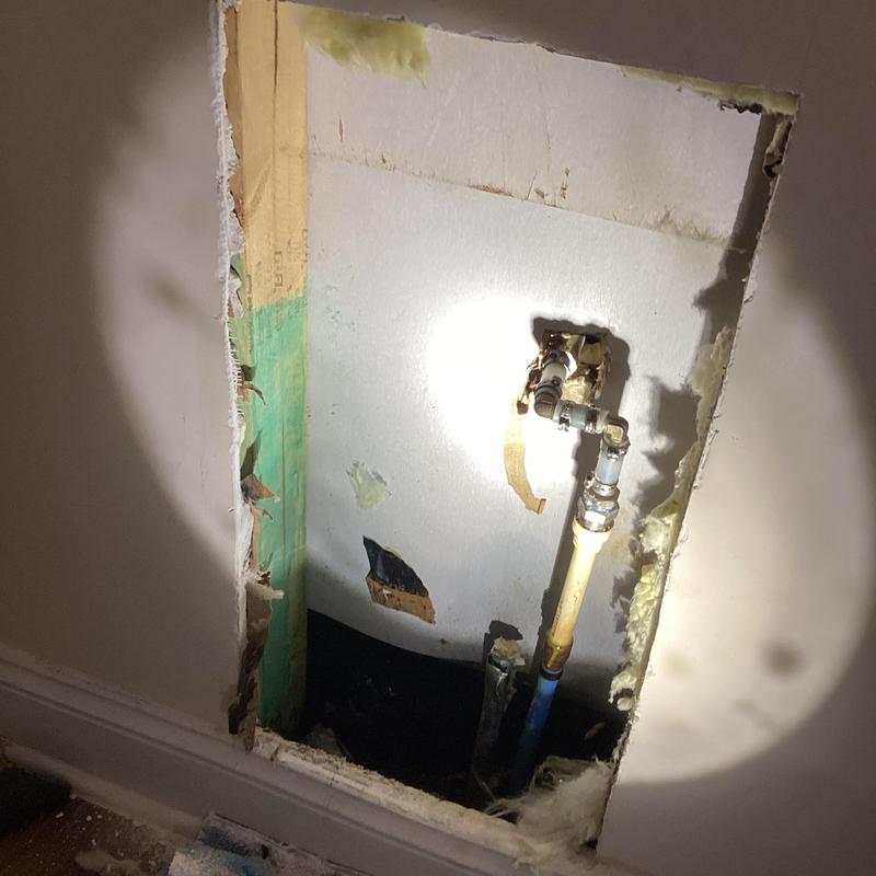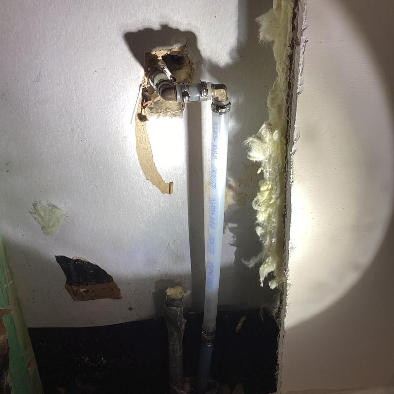 Dean Plumbing and Gas Piping repaired a leaking CPVC pipe behind a hose bib in a dining room in Huntsville, Alabama. The team replaced the damaged section with new ½” PEX piping and adapters. They tested for pressure and seal integrity, confirming no leaks at 70 psi. All materials were provided, and work is guaranteed for 90 days.