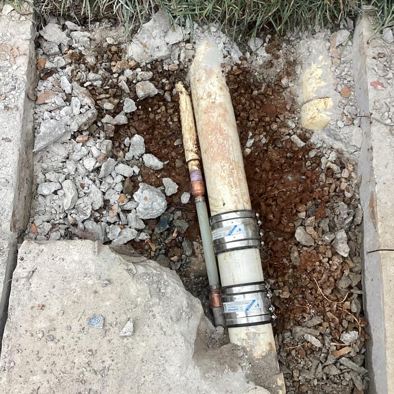 Dean Plumbing and Gas Piping repaired a leaking 1” PVC water service line in Huntsville, Alabama. Technicians replaced the damaged section with reinforced PEX and restored full water flow. A sewer line nicked during concrete cutting was also repaired using rubber couplings. All work completed successfully with water system tested and purged.
