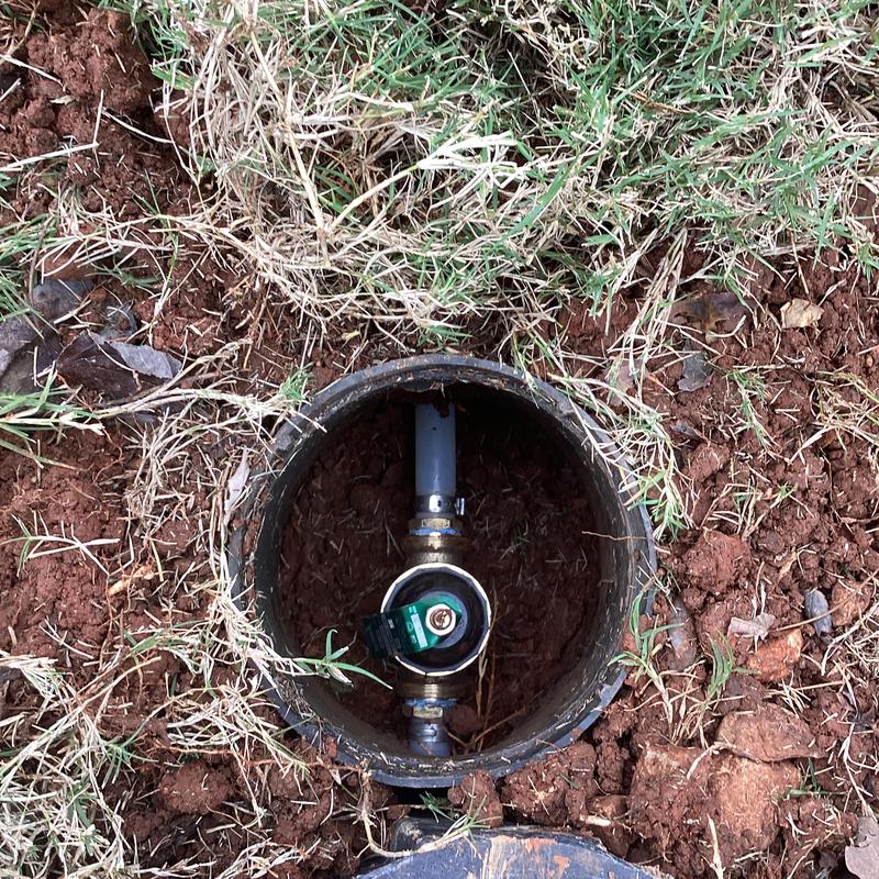 Dean Plumbing and Gas Piping installed a hose bib in an access box for leak detection in Huntsville, Alabama. The team dug to reach a PVC line, used PEX glue adapters, and added a shutoff valve and new hose bib. They tested the setup and confirmed no active leaks at completion.