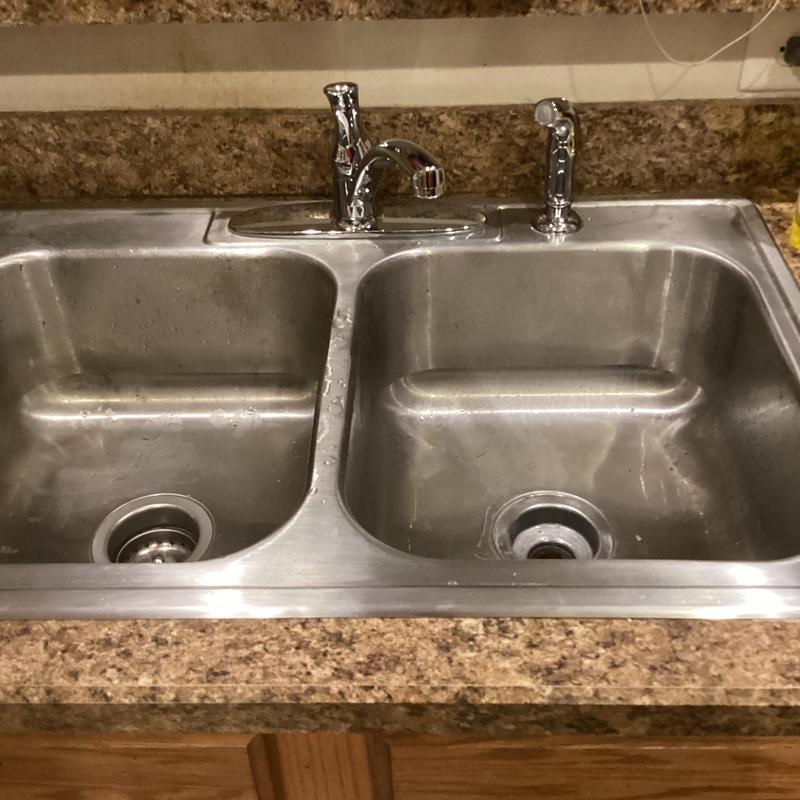 Dean Plumbing and Gas Piping replaced a Delta kitchen faucet with sprayer and installed new basket strainers in Huntsville, Alabama. They reworked drain plumbing, added a new dishwasher tailpiece, and corrected a leak at the waste outlet. All materials were provided by the contractor. Final testing showed no leaks, and the system worked properly.