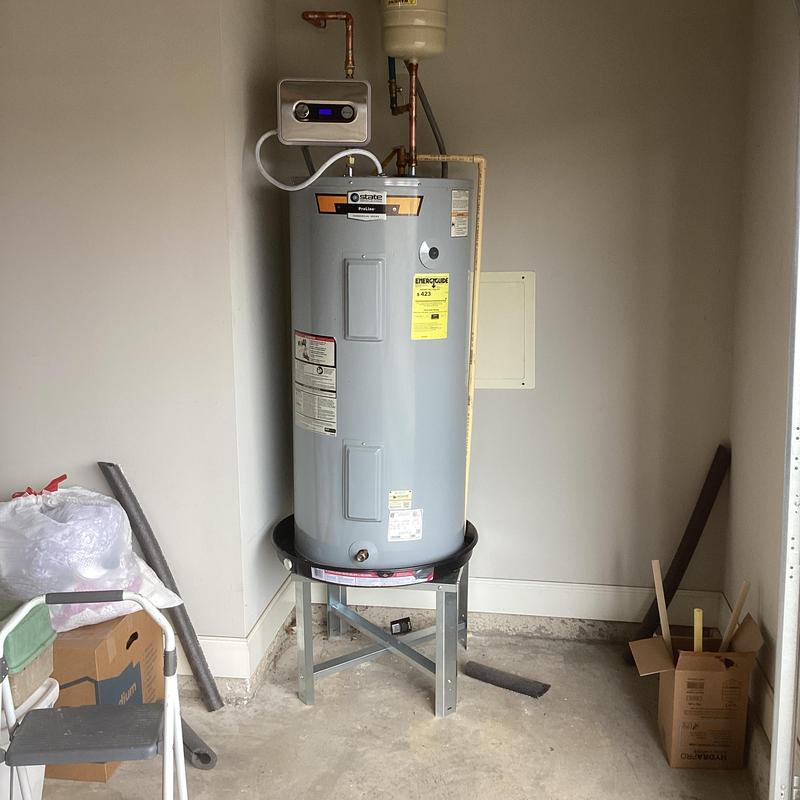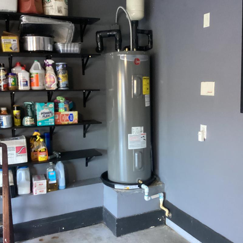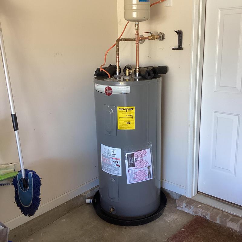 Dean Plumbing and Gas Piping replaced a 50-gallon electric water heater in a garage in Madison, Alabama. The team installed a new unit with an expansion tank, shutoff valve, insulated water lines, and drainage lines to prevent leaks. All materials were supplied and tested to ensure proper function with no active leaks.